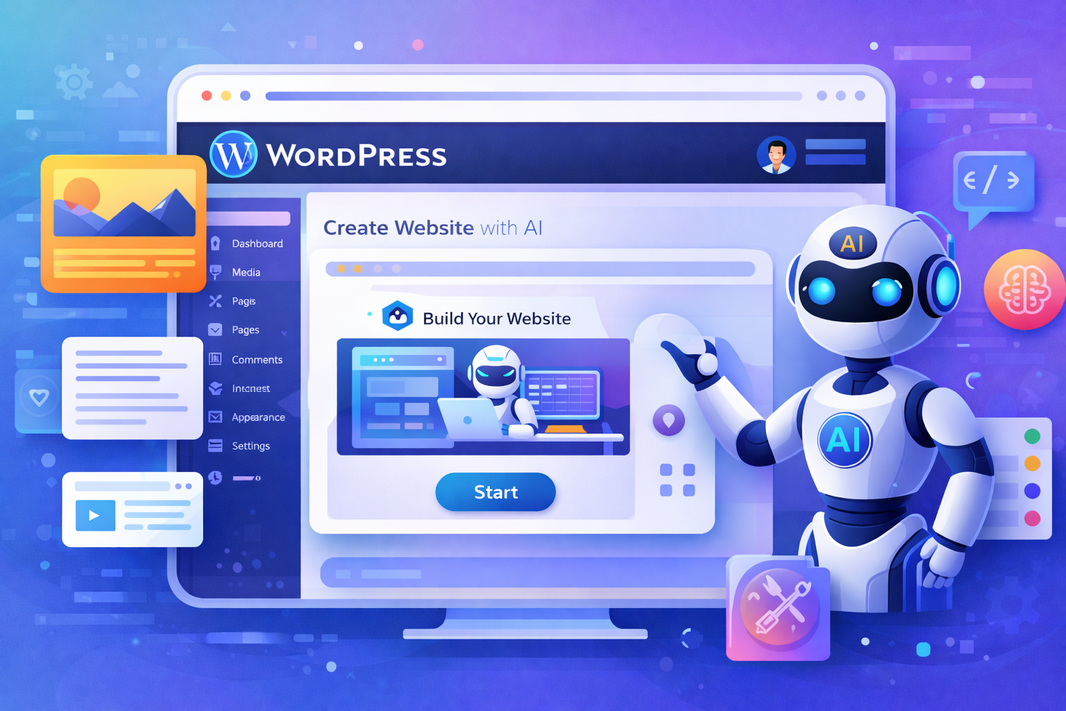 Si lo que necesitas es la creación de tu sitio web pero no tienes un equipo para crear tu web, esta opción te sera muy útil ya que WordPress tiene a tu disposición IA donde puedes crear tu web tan solo haciendo una descripción y este te lo hará realidad, muy simple.